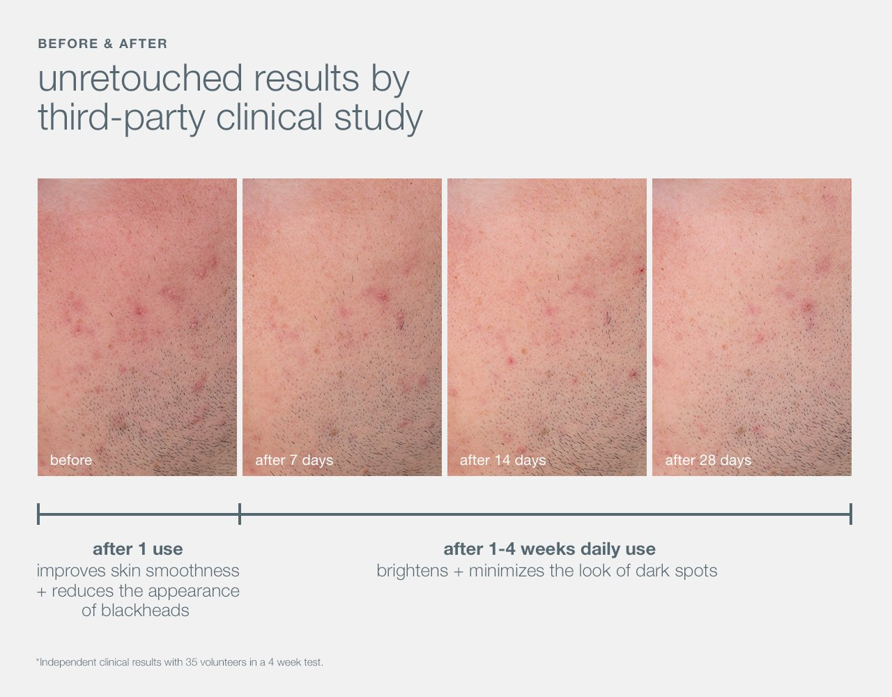 Key ingredients include Papain, Salicylic Acid and Rice Enzymes to polish skin to perfection. A Skin Brightening Complex of Phytic Acid from Rice Bran, White Tea and Licorice helps balance uneven skin tone while a super-soothing blend of Colloidal Oatmeal and Allantoin helps calm skin. Gentle enough for daily use.